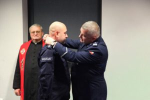 Podczas uroczystości nie zabrakło okolicznościowych wystąpień i świątecznych życzeń. Komendant Wojewódzki Policji podkreślił znaczenie codziennej służby policjantów: